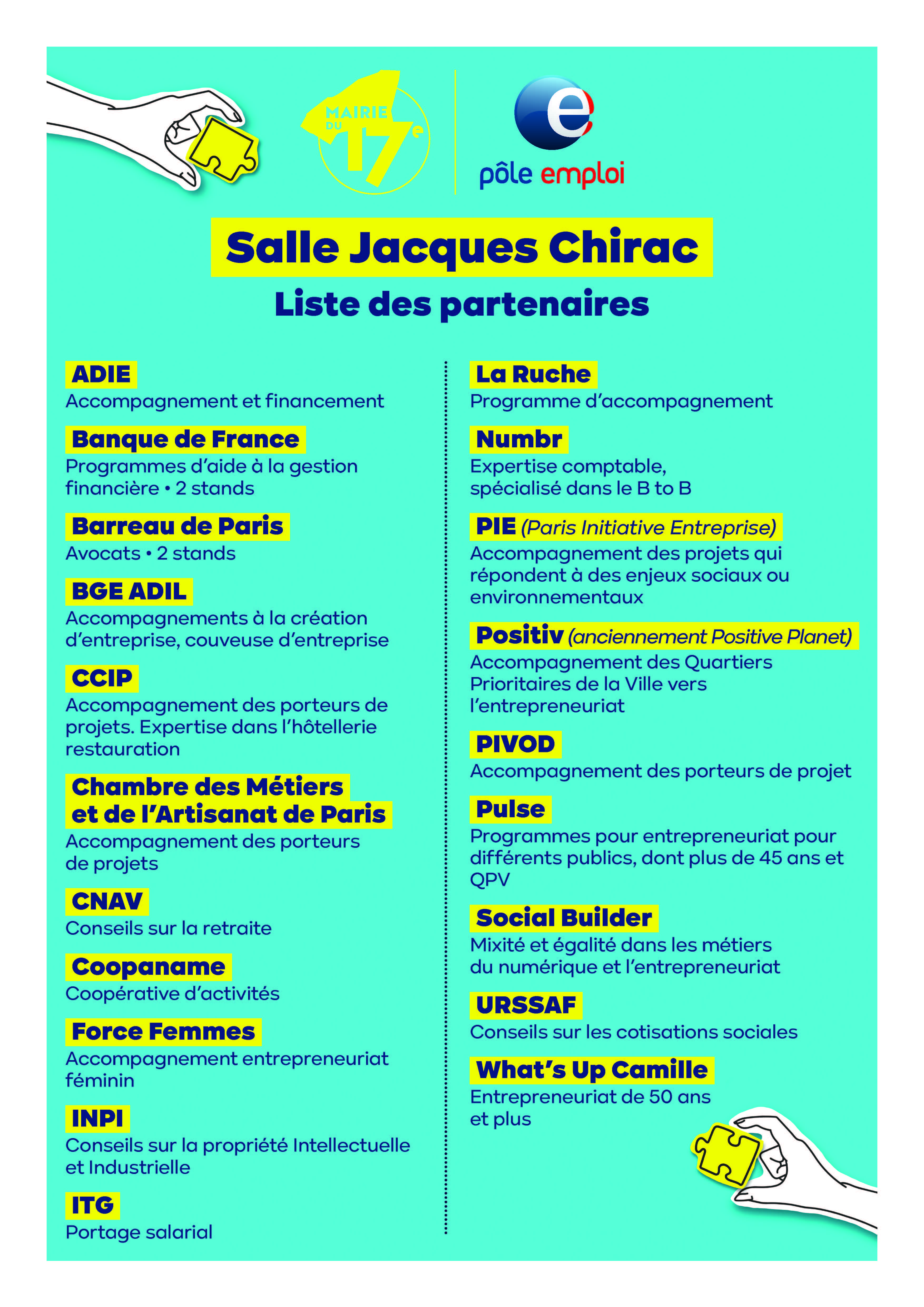 Avec plus de 25 stands, comprenant des institutions telles que le Barreau de Paris, la Banque de France et l’URSAFF, vous aurez l’opportunité d’accéder à des conseils juridiques et financiers pour votre projet de création d’entreprise.